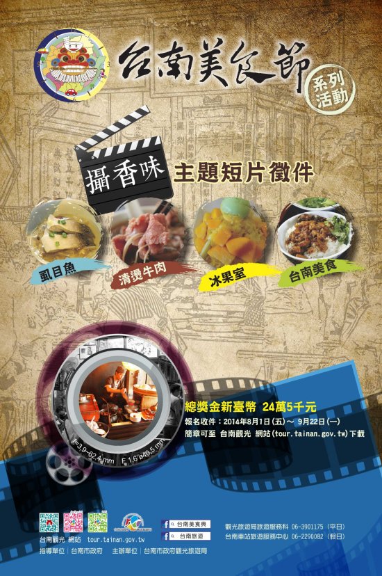 主旨:本局辦理「2014台南美食節系列活動:主題短片徵件計畫」,敬請協助於網站或現有通路行銷宣傳,並轉知鼓勵所屬踴躍投稿參與,共同推展台南美食旅遊,請 查照。